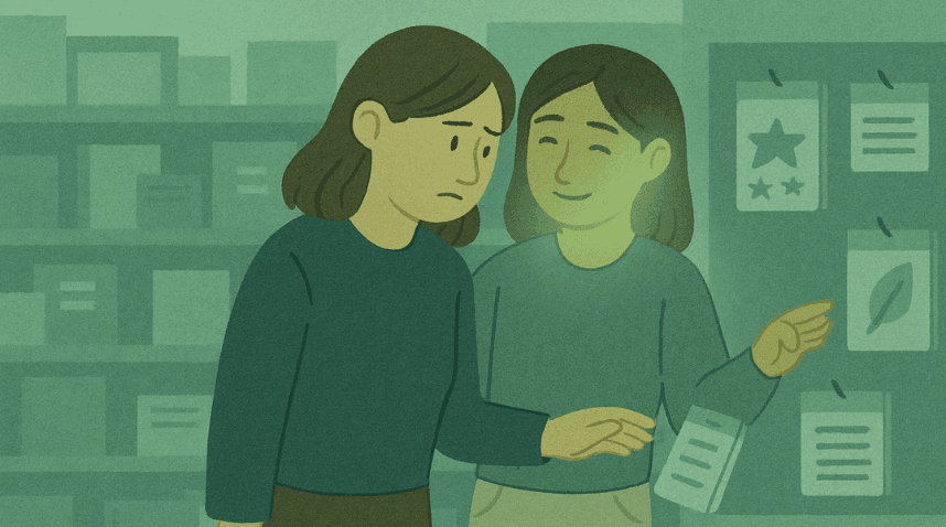 Invite a mindful friend to be your mirror and agree on a gentle question, as when my friend asked if the sticker pack was a passing desire and the urge eased.